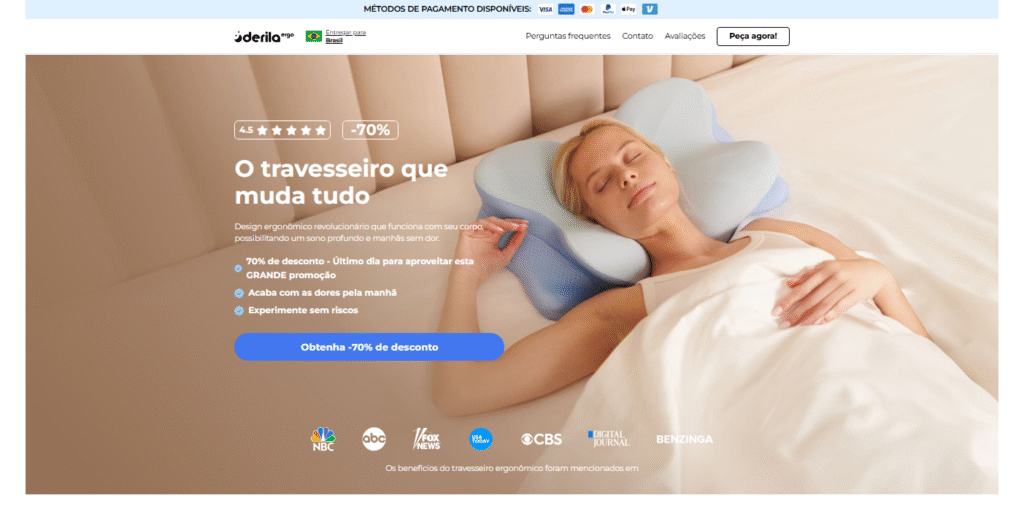 Black Friday Derila Ergo Pillow Travesseiro Compra Online Agora Site Oficial Economize 70% Desconto Derila Melhor Valor 1x Travesseiro 100% De Garantia Pagamento 100% Seguro 60 Dias de Garantia 60 Dias de Reembolso Frete Muito Rápido Para Sua Cidade Experimente Rem Riscos